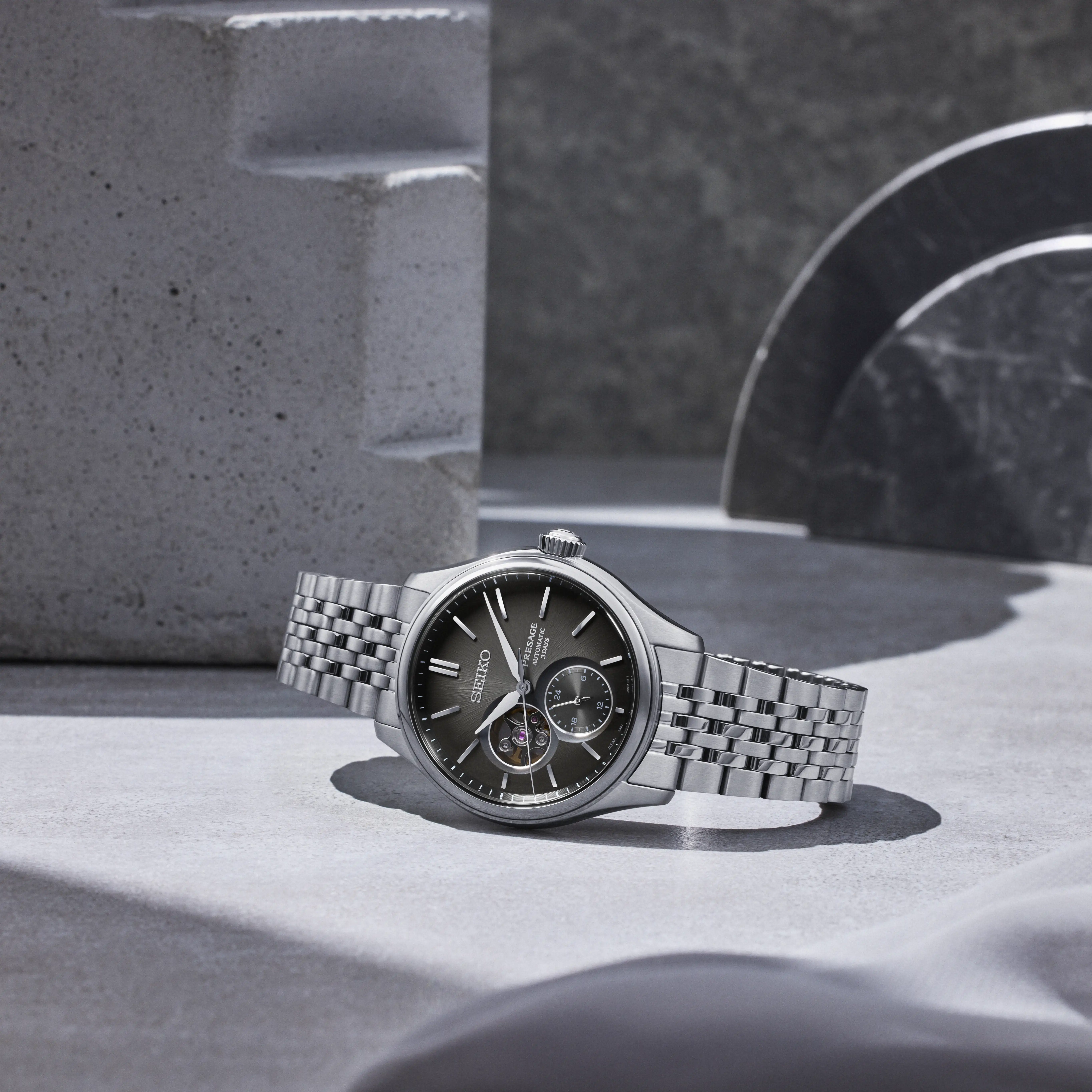 De strakke lijnen en het slanke profiel geven het horloge een puur eigentijdse uitstraling. Opvallend is het compacte, hoekige ontwerp dat naadloos overgaat van de kast, via de lugs, naar de horlogeband. Het titanium van de kast en de horlogeband is afgewerkt met een krasbestendige hard-coating. En dankzij het bescheiden gewicht van dit materiaal en het lage zwaartepunt van de kast, rusten de horloges buitengewoon comfortabel op de pols.